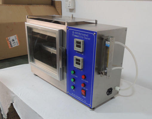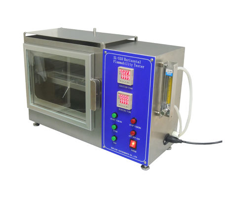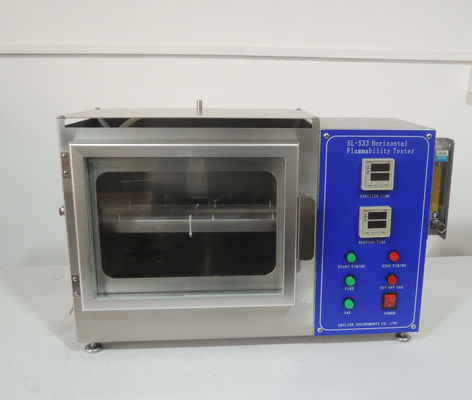 Instrument składa się z dwóch części: skrzynki kontrolnej i komory spalania. Próbka jest zaciśnięta płasko za pomocą zacisku i umieszczona na wsporniku komory spalania. Płomień jest zapalany przez skrzynkę kontrolną przez pewien czas, a płomień gaśnie. Obserwować rozprzestrzenianie się płomienia w próbce, mierzyć czas potrzebny, aby płomień rozprzestrzenił się na pewną odległość na próbce, obliczyć prędkość rozprzestrzeniania się płomienia i ocenić ognioodporność próbki.