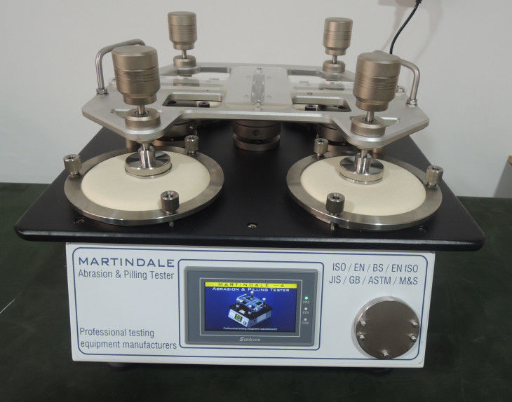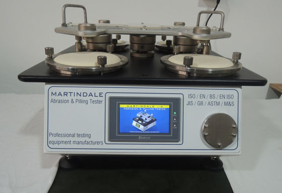Martindale Abrasion & Pilling Testerokreśla odporność na ścieranie i szczelinowanie wszystkich rodzajów konstrukcji włókienniczychPróbki są pocieranie znanych ścieraczy pod niskim ciśnieniem i w ciągle zmieniających się kierunkach.