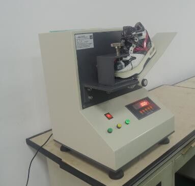 2. Zainstaluj próbkę (but lub podeszwa buta) i umieść zygzakowatą linię próbki na obracającym się wałku, aby ścisnąć podnosek;