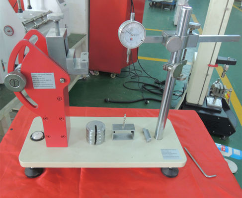 Maszyna do testowania sztywności skóry służy do pomiaru sztywności w kierunku wzdłużnym stalowych trzpieni służących do wzmocnienia obszaru talii butów, cholewka jest zaciśnięta na końcu pięty i wygięta jak belka wspornikowa przez masy dodane do jego przodu, a następnie obliczyć sztywność zginania trzpienia.